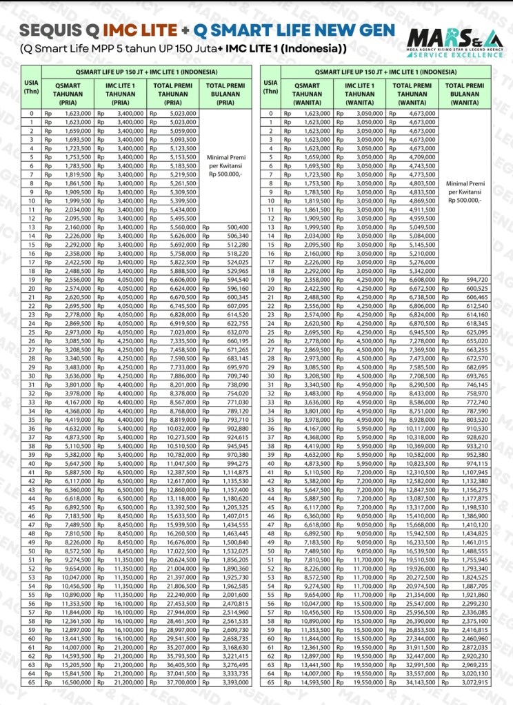 contoh yg ditabel ini MPP 5tahun qsmart, maka setelah 6 tahun hanya bayar biaya asuransi kesehatan saja.