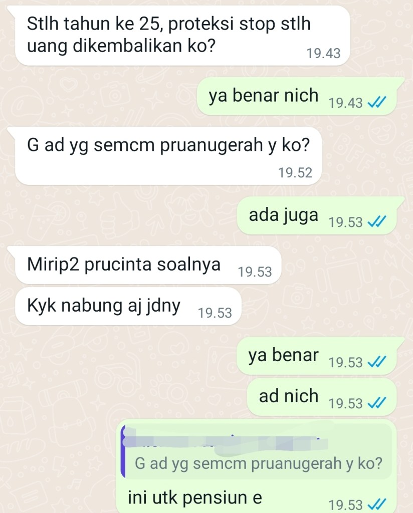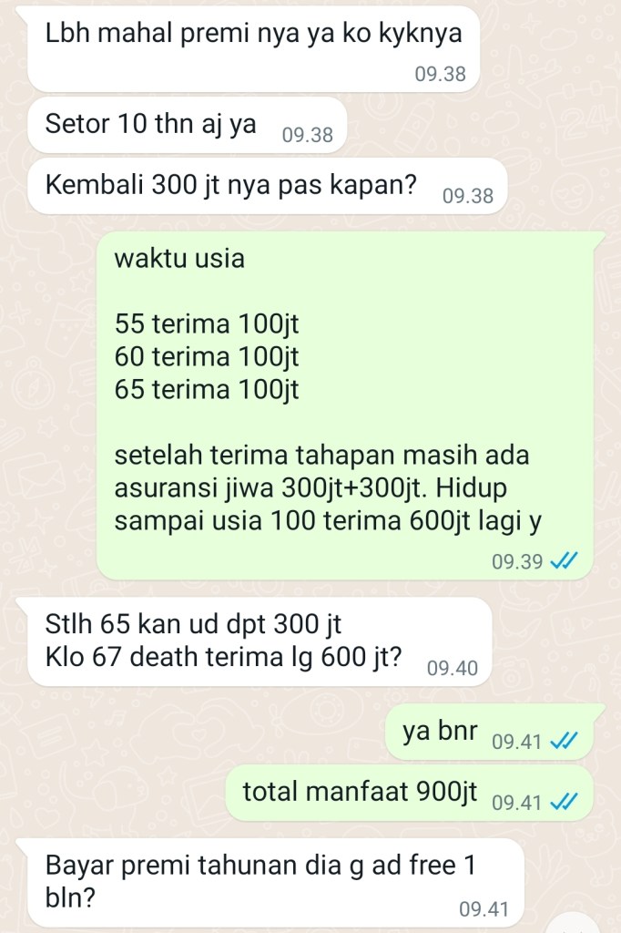 nasabah suka produk ini. karena bayar premi kecil dapat up 500jt sampai usia 100.